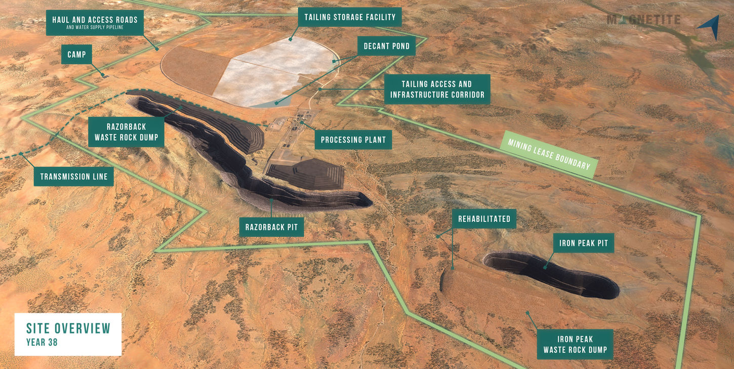 The MLP seeks approval for a Mining Lease (ML) covering mining and ore processing operations, and contemplates annual production of 5 million tonnes of high-grade iron ore concentrate, supported by a range of non-process infrastructure, an accommodation camp and tailings facility.